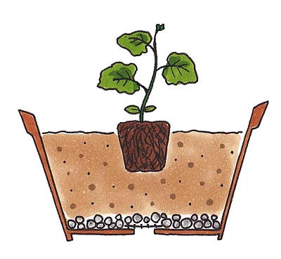 プランターに苗を植えつけるときは、ポットの土の表面が地表面より高くなるように植えつけると、水はけがよくなり、病気が出にくくなります。庭植えの場合もできるだけ高畝にしましょう。水たまりができるような土壌ではうまく育ちません。