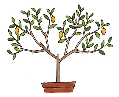 カンキツ類の整枝剪定は、2~3月に行ないます。レモンは半円形(図参照)や主幹形に仕立てるのがおすすめです。1~3年目の苗木は、病害虫にあった枝、前年の秋に伸びた枝、充実していない枝などを切り詰めて樹形を整え、株の内側に光が当たるように側枝を開くようにします。2年目の春には、いくつかの新梢が出てきていますが、2~3本の強い枝を選んで伸ばし、先端から1/3程度で枝を切り詰めます。下枝はすべて基部から切り落とすとよいでしょう。樹形がある程度できあがった4年目以降は、主に間引き剪定を中心に行いましょう。