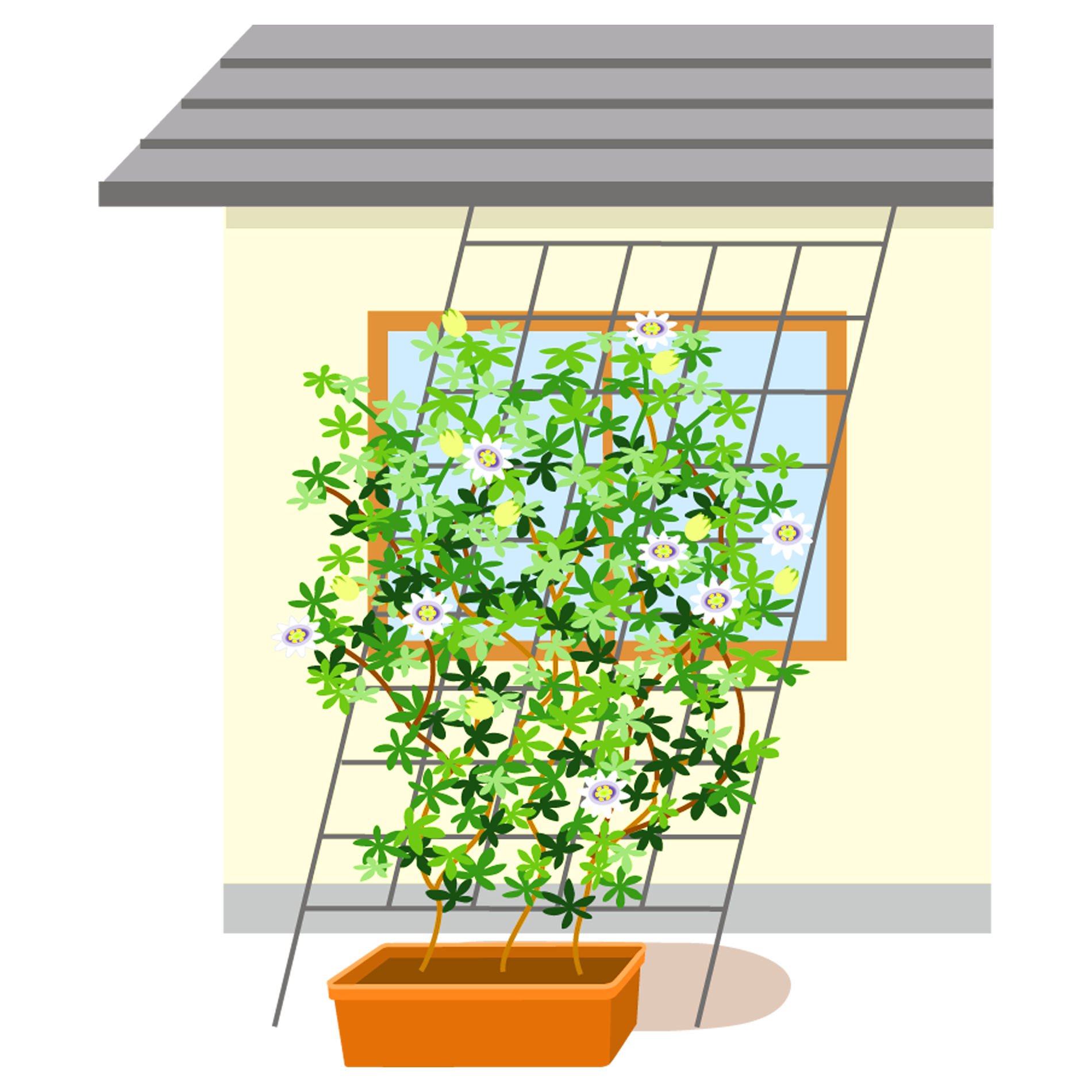 花の巻きひげを絡ませてよじ登る性質を持っており、緑のカーテンに向いています。