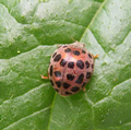 - 幼虫・成虫ともにトマト、ナス、ジャガイモなどのナス科のほか、キュウリ、すいか、カボチャなどのウリ科の植物の葉を食べる食害性害虫。