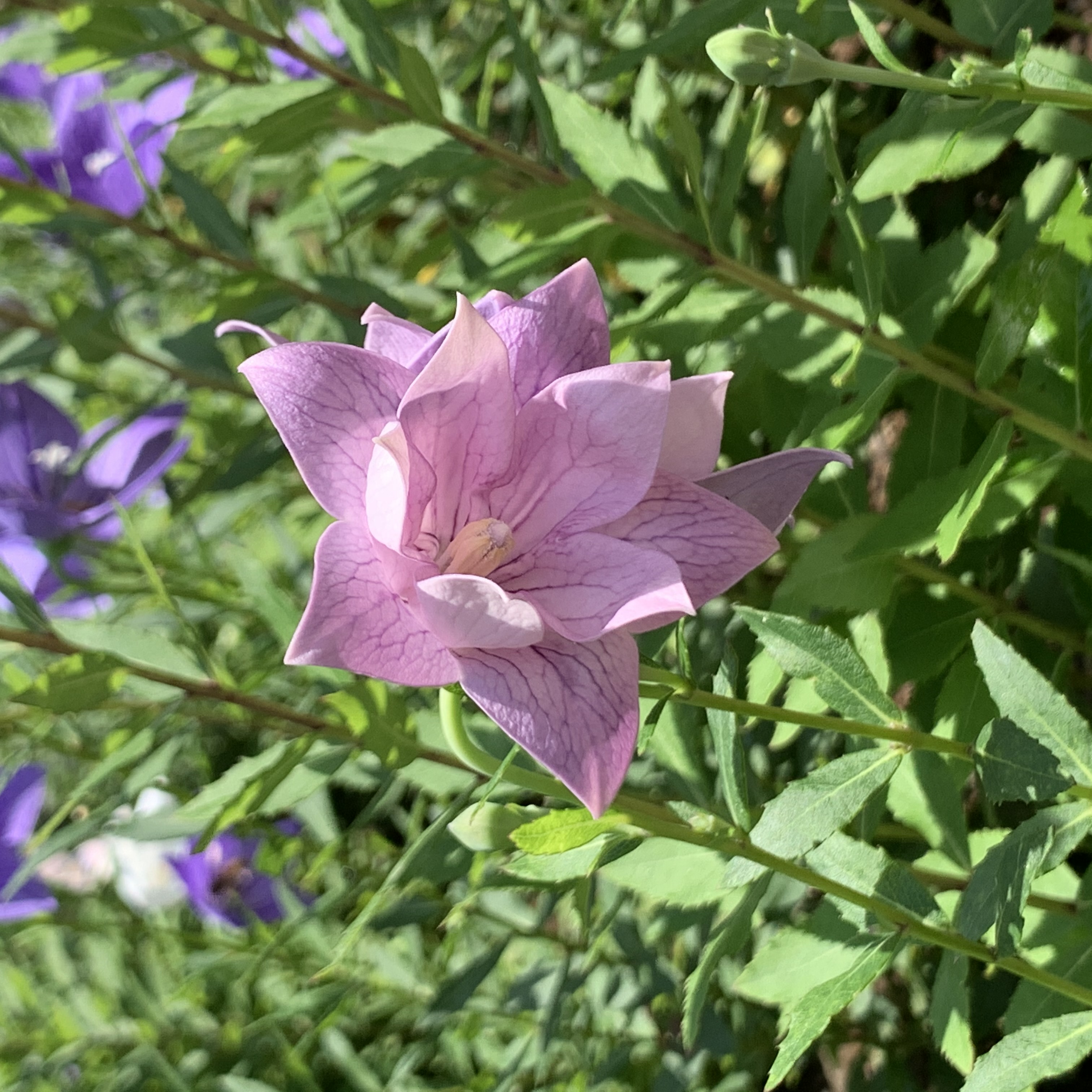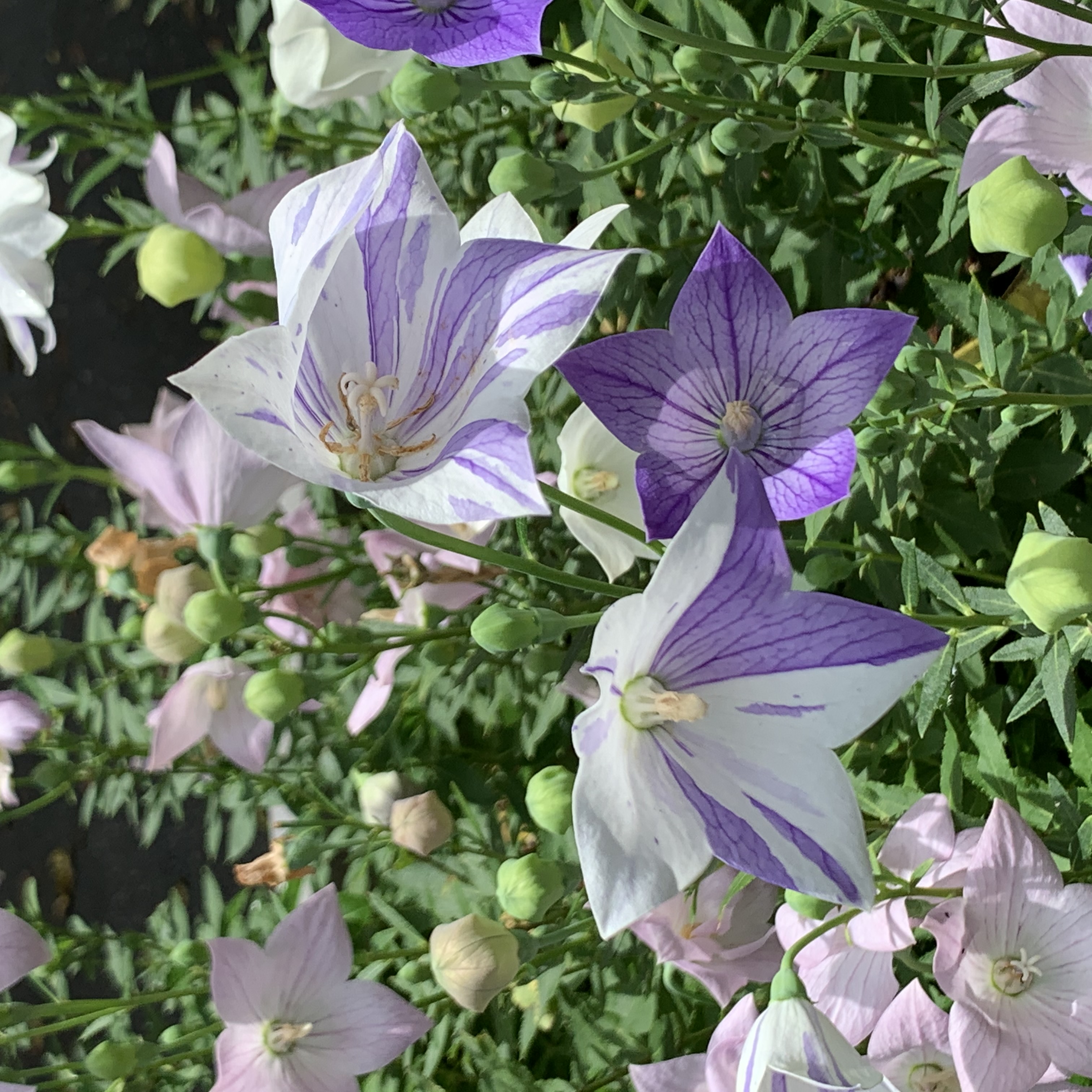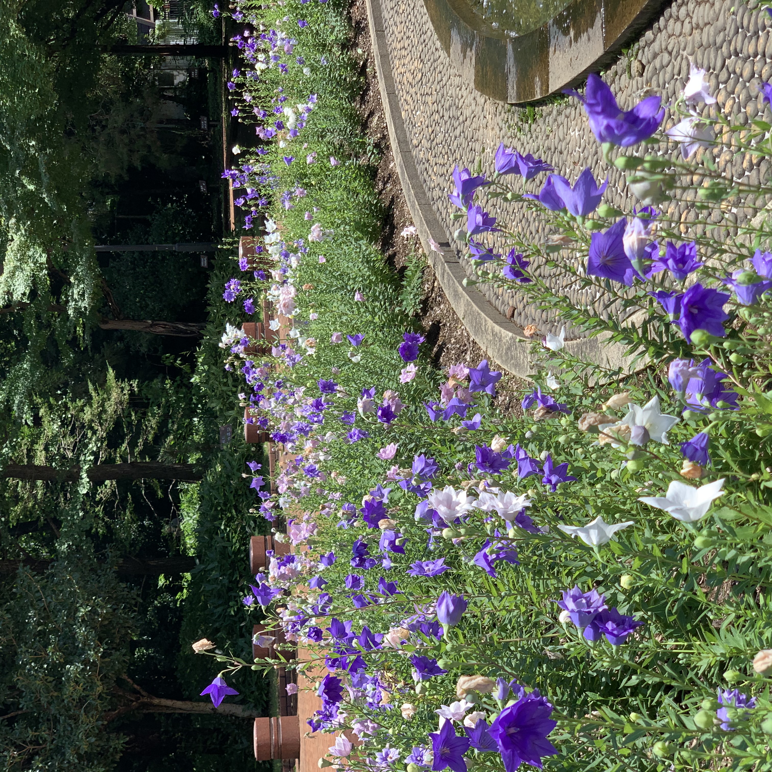 噴水の花壇に近寄ってみると、それは咲き誇るキキョウでした。