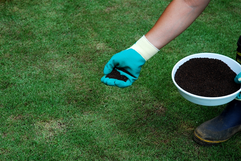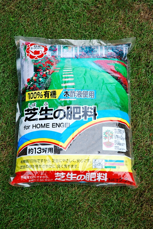 暖地型シバは4、6、8月の各月に市販の専用肥料(粒状化成肥料)を1㎡当たり40~50gシバの上に均等にまく。西洋シバは3~6月、9~12月に施す。