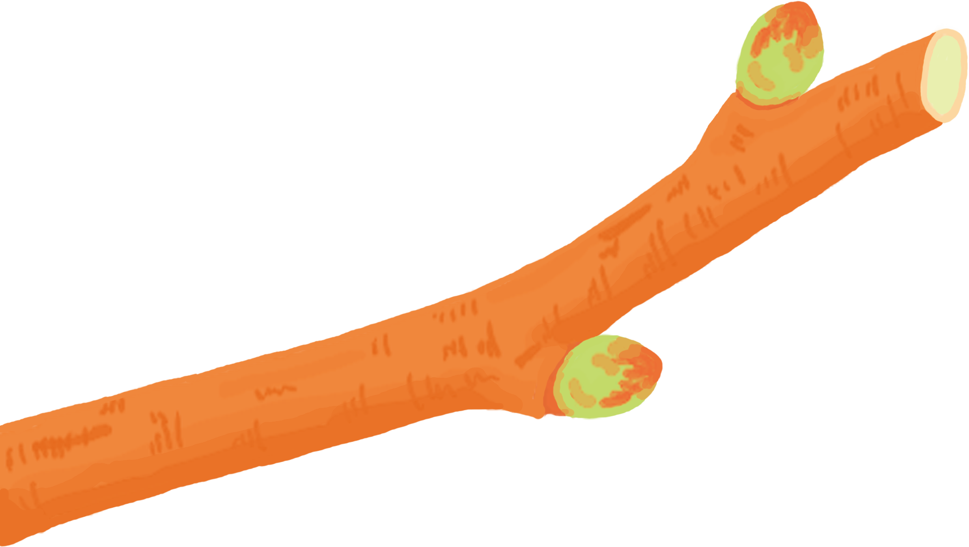 芽から下に深く切りすぎると、切り口が乾燥して芽が枯れやすい。
