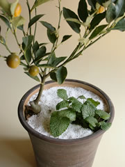今回はキンカンに、柑橘系の香りをもつハーブを寄せ植えに。ペアでの楽しみ方も紹介します。