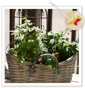 今回は矮性品種のラズベリーに、春から秋まで果実がつくワイルドストロベリーを寄せ植えにして、清楚な花とかわいい果実を楽しみます。