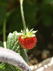 ◎ワイルドストロベリーもラズベリーも、果実ができたら雨に当てないように軒下などに置きましょう。雨に当たると蒸れたり、果実にカビが発生します。果実が色づいたら、適宜収穫を。