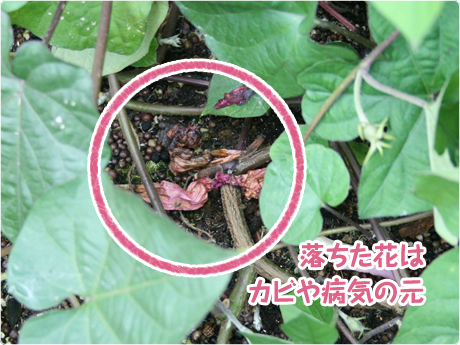 花がらは自然に落ちるから手間なしなんだけど、落ちた花をほったらかしにすると、カビや病気の元になるって。株元のお掃除もがんばらなくっちゃ☆