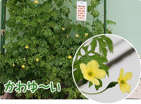 ほら、ミニゴーヤーの実がなってる\((=゚▽゚)/ワーイ