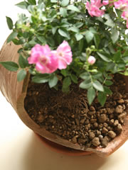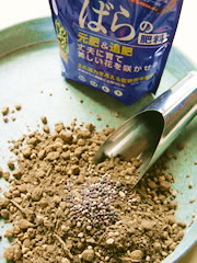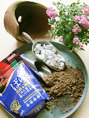 培養土に適量の「マイローズばらの肥料」を混ぜておきます。