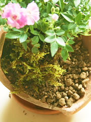 土留めとして敷いた水ゴケもそのうちしっとりと馴染んで、ミニチュアガーデンのような風景を見せてくれることでしょう。