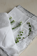 押し花をつくる。好みの花を新聞紙とティッシュペーパーに挟んで、本などの重しを乗せ、7~10日ほど押します。ティッシュペーパーは毎日取り替えましょう。