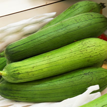 タワシや化粧水の原料として知られるヘチマも、沖縄県では人気の食材で、鹿児島県でも食用に栽培されています。若い実を収穫し、炒めものや汁ものなどに利用されます。かつては長さ1mにもなる大長系が栽培されていましたが、近年では30cmほどの短系が主流です。