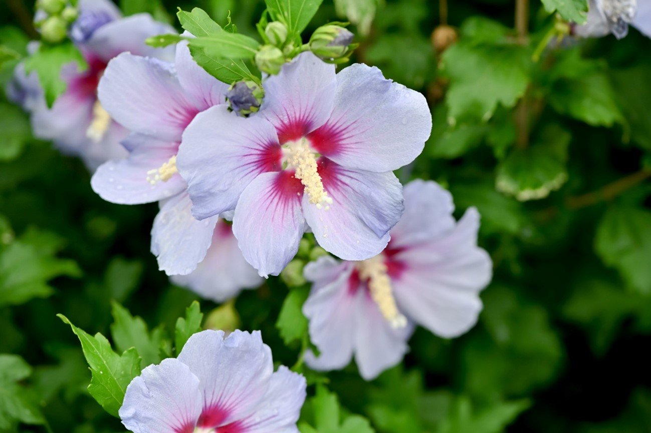 ムクゲは、夏から秋にかけて、ハイビスカスに似た美しい花を咲かせるのが特徴です。