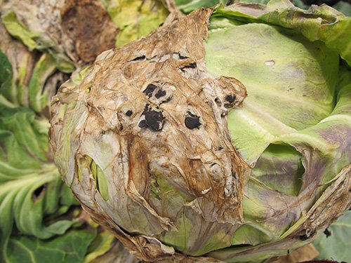 菌核病を発症したキャベツがあると、そのキャベツで形成された菌核が土壌内で生存します。菌核は土壌内で2~3年は生き残るため、一度発生した場所では再発への注意が必要です。
