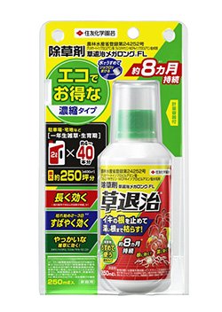 草退治メガロングFLは、先述した2つの製品と異なり、樹木の下の雑草にも使用可能です。散布後、雑草は最短2~3日程度で枯れ始め、約8ヵ月雑草の発生を抑制します。