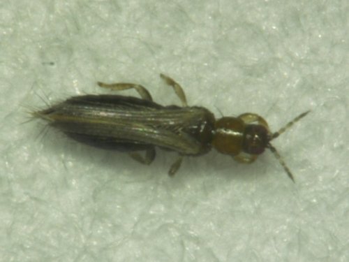 ネギアザミウマは、黄色と褐色が混ざった体色で、長さ約1mmの細長い虫です。幼虫は透明です。高温と乾燥を好み、特に6月から10月にかけて被害が目立ちます。