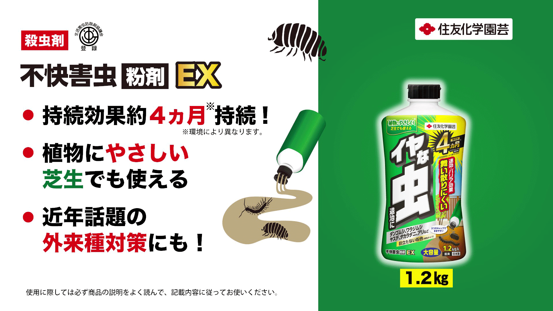●ダンゴムシ、ムカデには、まちぶせ殺虫効果はありますが侵入防止効果は期待できません。