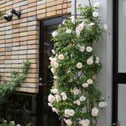 小型で細身のオベリスクなら、つるバラも枝が細い小輪系を選んではいかがでしょう。半つる性のオールドローズやイングリッシュローズ、フレンチローズを沿わせるのもよいでしょう。