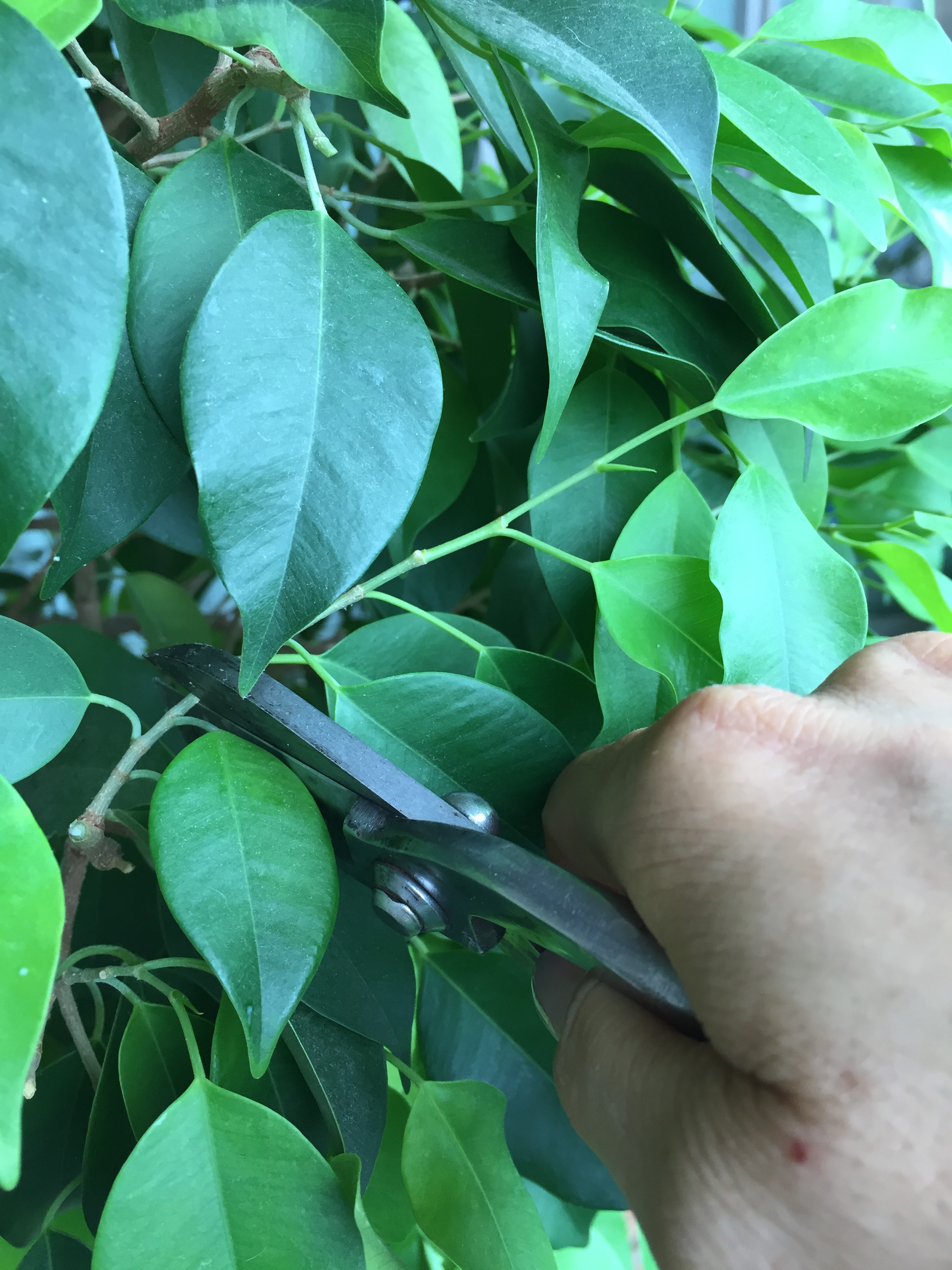 今さーこのベンジャミンに床屋さんをしてあげようか、どうしようか考えてたんだよね〜