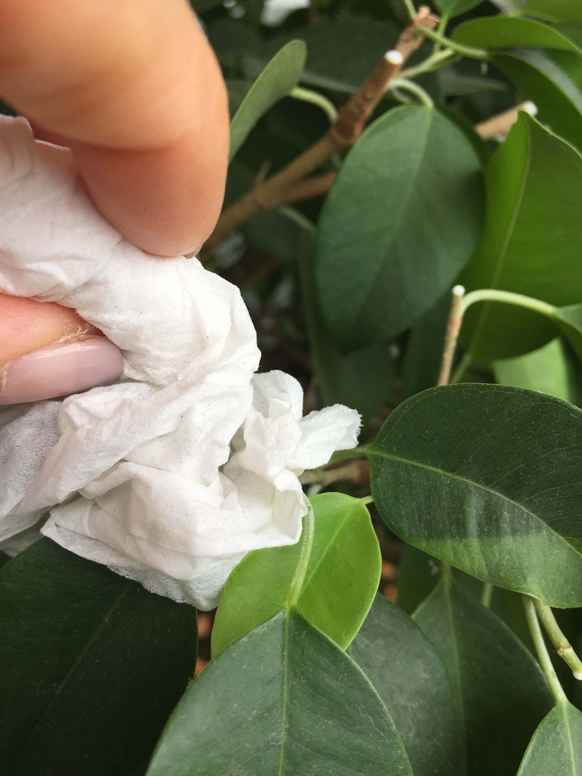 葉っぱが綺麗に清潔になるだけじゃなくて、新しい汚れやホコリがつきにくくなるんだよ!すごいでしょ!