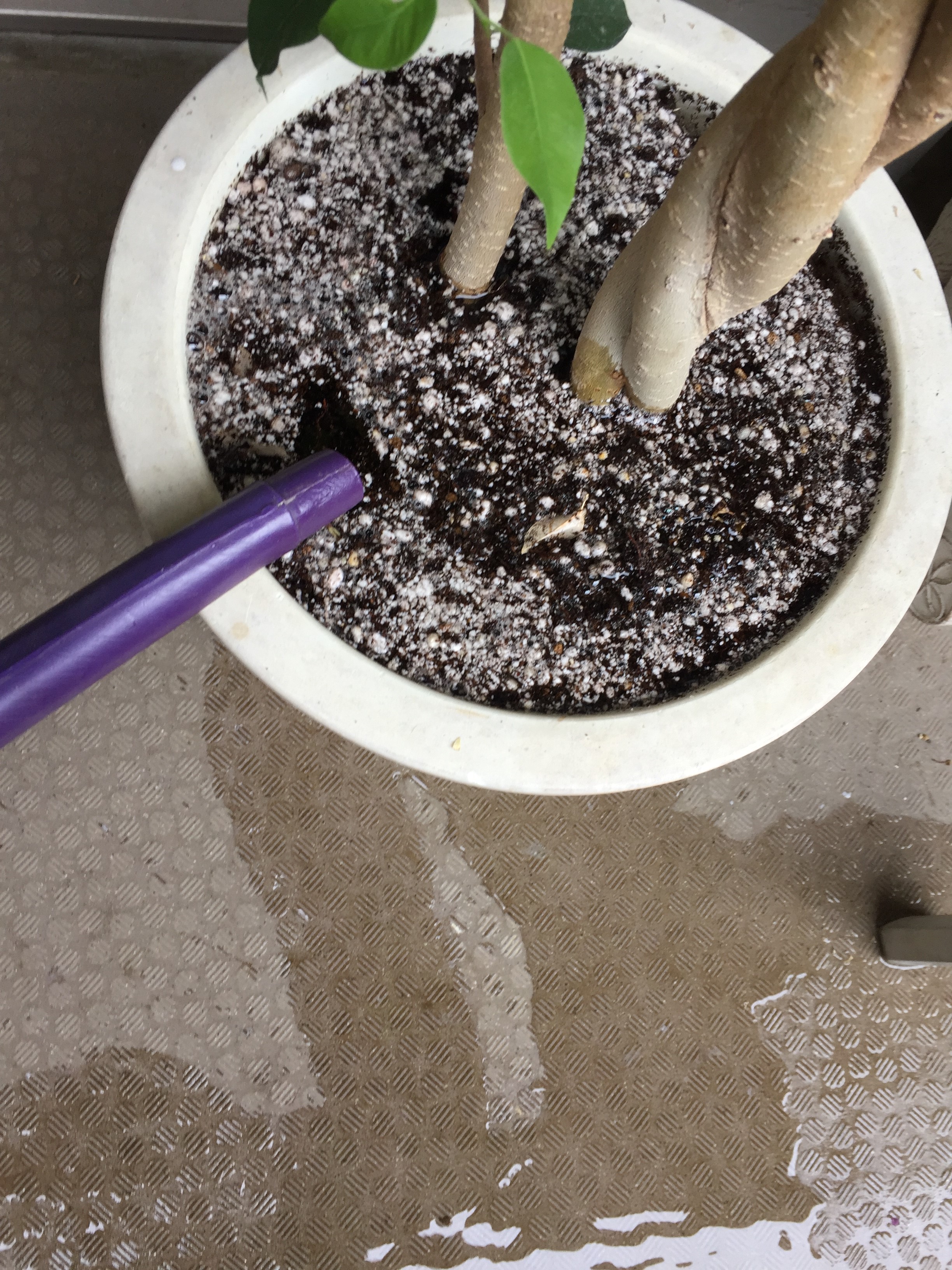 この方が、新しい空気も、そして土の隅々まで新鮮なお水が行き渡るし...良いことずくめなの。根腐れ防止にもなるし