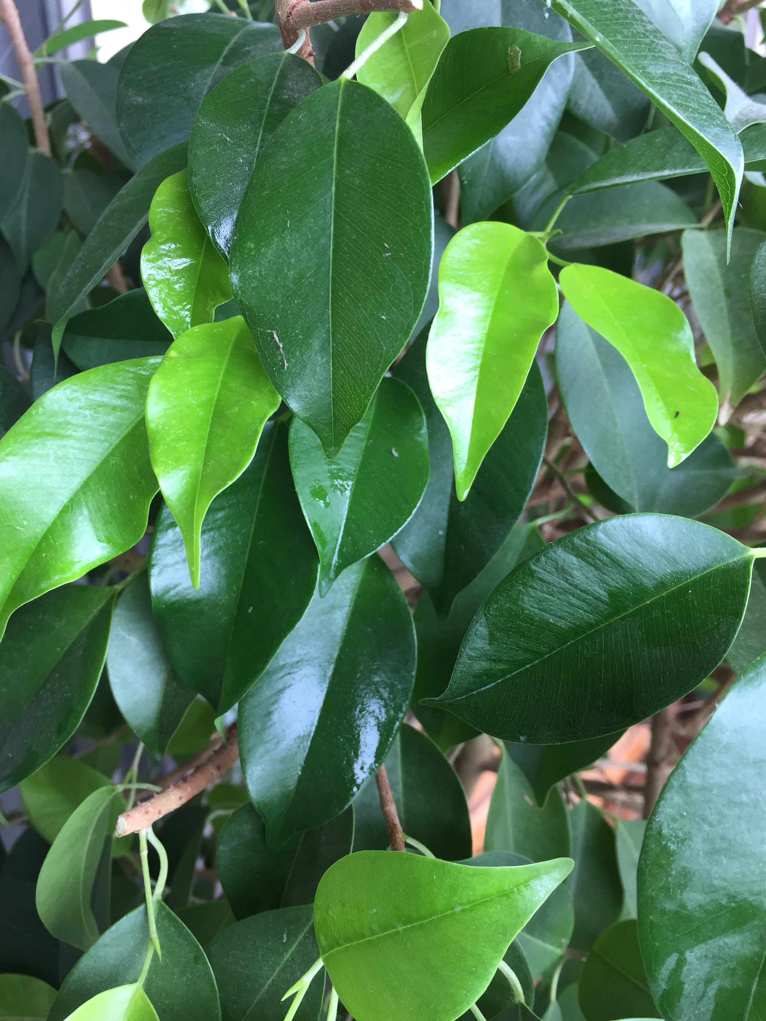 園芸店のベンジャミン、もっとツヤツヤしてピシッとしてカッコよかった