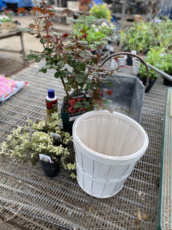 根がしっかり育つようにポットタイプの植木鉢を使うよ!株元にはクレマチスを植えてみよう♪