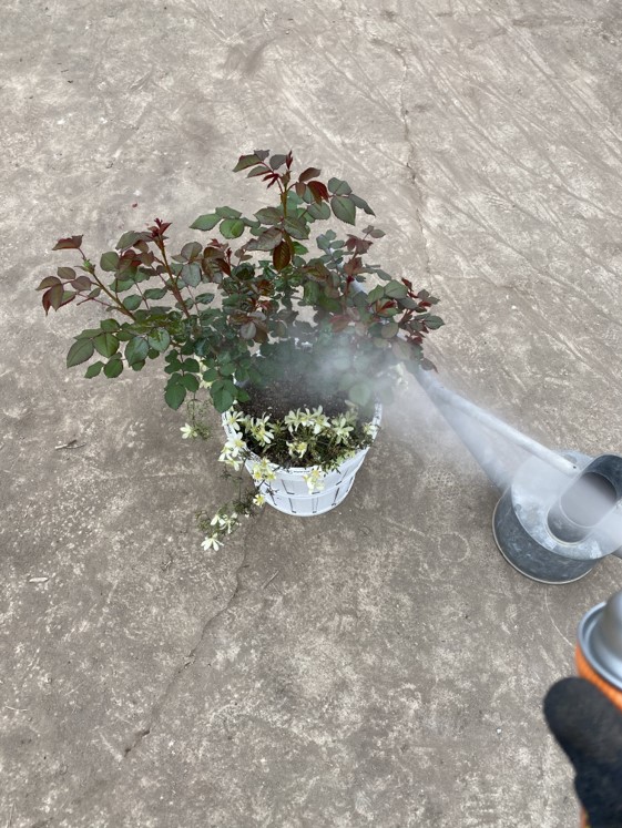これをね、株全体にね!植物から30cmぐらい離してスプレーするんだよ