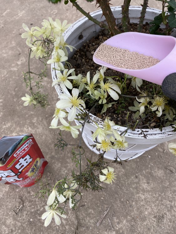 殺虫殺菌剤も粒タイプだとさ、かけたのわかるから安心ね〜