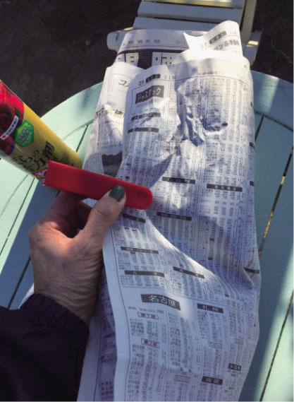 おまけにね、霧吹きで新聞紙全体を濡らすの。